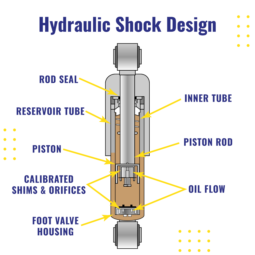 Often considered a basic form of twin-tube, hydraulic shocks use oil only (no gas charge) to dampen suspension movement.