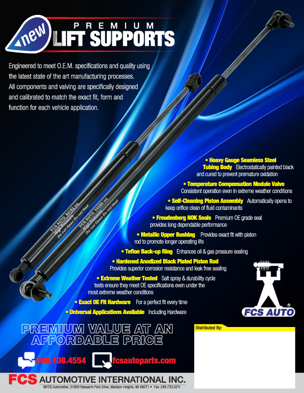 Product Brochures & Flyers FCS Product Brochure Premium Lift Supports Brochure FCS Heavy Duty Air Springs Catalog Universal Lift Support Catalog Tech Articles 7 Critical Mistakes to Avoid When Installing Complete Strut Assemblies 5 Common Indicators of Heavy-Duty Truck Shock Absorber Problems How FCS Bearings Improve Strut Mount Swivel Performance Optimizing Vehicle Handling with Struts, Shocks & Ride Control Monotube vs. Twin-Tube vs. Hydraulic Shocks: Which is Right for Your Ride? Switching from Active to Passive Suspension with FCS Conversion Kits – A Cost-Effective Solution Installation Tips for Magnetic Ride Control Complete Strut Assemblies on 2015-2020 Cadillac Escalade, Chevrolet Tahoe and GMC Yukon SUVs (short wheelbase) Why It’s Important to Perform an Alignment When Replacing Shocks & Struts Why It’s Important to Prime Shock & Struts Prior to Installation 8 Warning Signs Your Coil Springs Need to Be Replaced Let's Get Social FollowFollowFollowFollowFollow